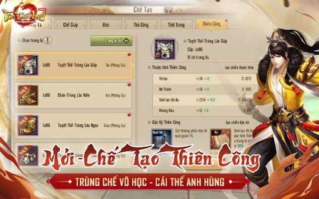 + Mới - mở tính năng Chế Tạo Thiên Công – chế tạo thuộc tính và đặc kỹ giúp gia tăng thuộc tính, nâng tầm mạnh hóa.