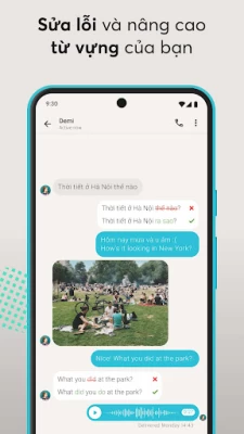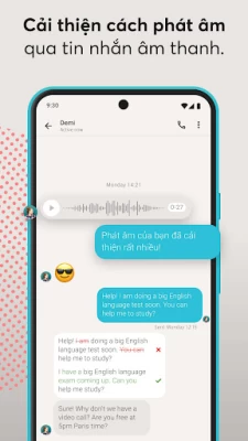 Sau khi bạn kết nối, đã đến lúc học hỏi lẫn nhau và nhanh chóng thành thạo ngôn ngữ đó! Bạn có thể nhắn tin, gọi điện hoặc thậm chí là trò chuyện video – giao tiếp với bạn đồng hành của mình, tùy theo nhu cầu của bạn. Đã đến lúc cùng nhau tiến bộ trên hành trình học tập của bạn rồi đấy!