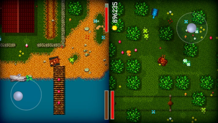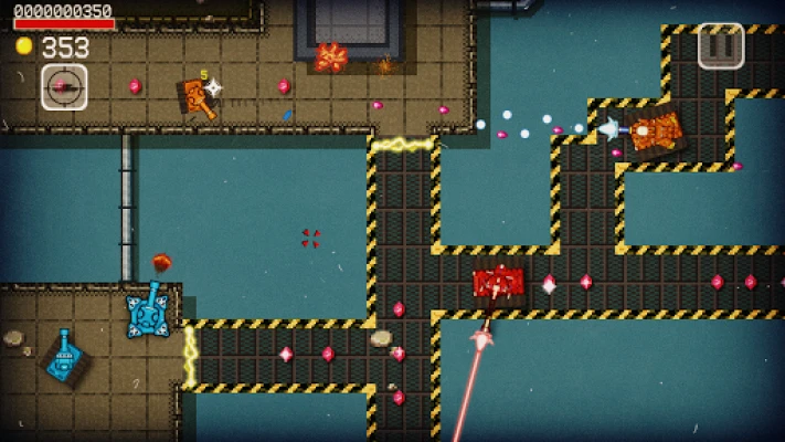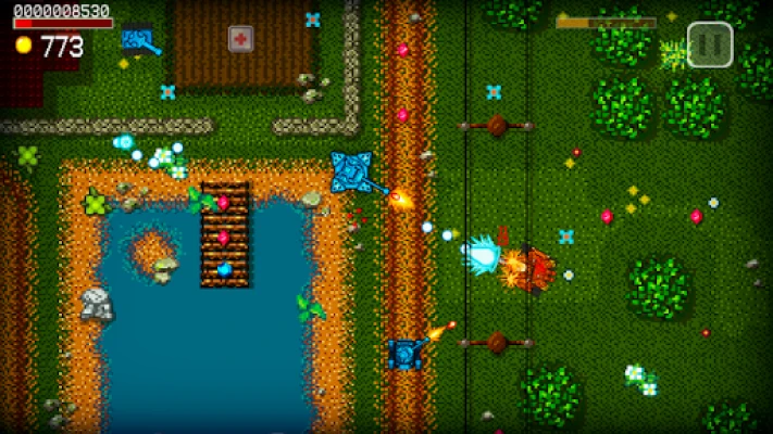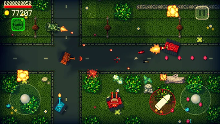 The left stick controls the engine, the right stick controls the tower. The pixel tank on the left side of the screen is the autodisco. Auto aim allows you to conduct an enemy tank, which simplifies aiming. A click on any empty spot on the screen will instantly turn the tank turret in that direction. Do not miss the coins and crystals, they allow you to quickly improve the tunk. In the two player mode, the device screen is divided in half. Player-controlled tanks shoot at enemies automatically. If you click in an empty place on the screen, then the tanchik will turn the tower into this area and shoot. Similar capabilities has a tank 2 (second player).