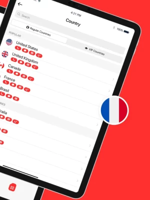 VARIOUS NUMBERS: App displays a list of 30 countries' numbers. Here are some of the most popular countries: USA, UK, Canada, Germany, France, Japan, etc. Virtual numbers are operated like real ones, no need for second SIM!