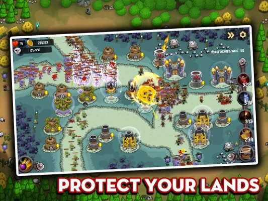 Trò chơi thủ thành TD – King Of Legends là trò chơi thủ tháp kinh điển và mới mẻ. Có vô số kẻ thù và bạn phải dùng chiến thuật tuyệt vời của mình để chống lại kẻ thù và vua của chúng. Có 4 tháp và 16 biến thể, bạn có thể sử dụng (archer, mage, barrack và turret). Ngoài ra, bạn có các power-ups để hỗ trợ khi bạn không thể chiến thắng kẻ thù đông đảo. Chúng bao gồm: đóng băng, mưa lửa, golds và hearts...