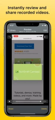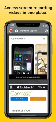 TechSmith Capture™ allows you to quickly record your training and app demo videos on your iPhone or iPad. Share directly from your mobile device to TechSmith Camtasia for editing and enhancements.