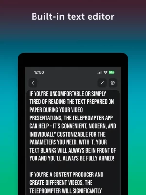 With the teleprompter your gadget will become an indispensable assistant during public speeches! Create your best videos and read text from the screen of your device!