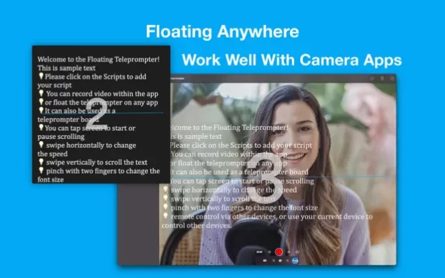 Floating Teleprompter is a handy teleprompter tool that can display Scripts at the top of any app. Convenient for vloggers, youtubers and live hosts.