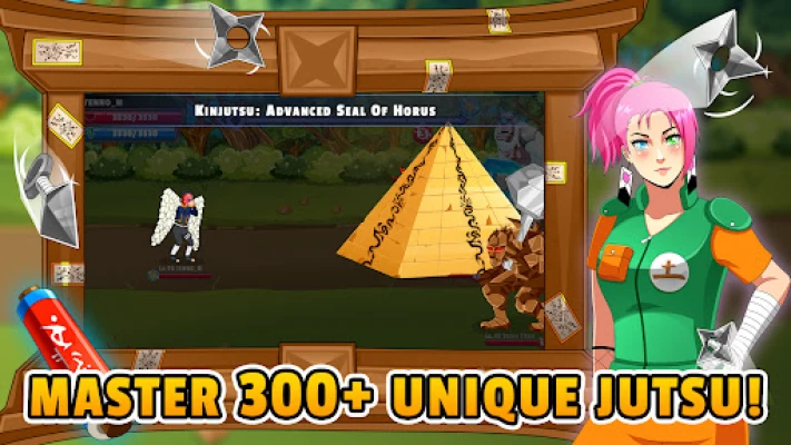 Master Tactical Battles: Engage in turn-based combat, using your elemental powers and jutsu to outsmart enemies and rival ninjas.