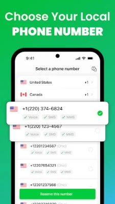 Instantly get a local US or Canadian phone number of your choice. Use this free texting app number as your dedicated business line, a disposable burner number, or simply a private second number for personal use. Your new number is ready to call now and text now!