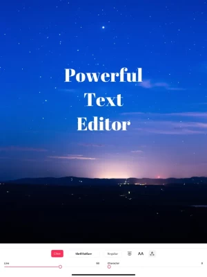 - 100+ predefined text art design + freestyle text with advanced editing tools. You can adjust the text font, colors, strokes, spacings, alignments, shadows, borders, shearing, or transforming.