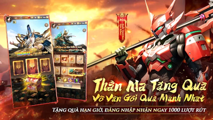 Vào game là tặng 1000 lượt rút, mở ra kỳ ngộ, đăng nhập 7 ngày tặng Võ Thánh "Quan Vũ", ngoài ra còn cực nhiều phúc lợi, đăng nhập game nhận mỗi ngày.