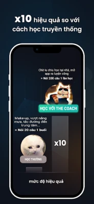 - App này dễ học, dễ hiểu. Có lộ trình sẵn mà The Coach đã lên khung chương trình phù hợp với từng trình độ, nhu cầu giao tiếp tiếng Anh.