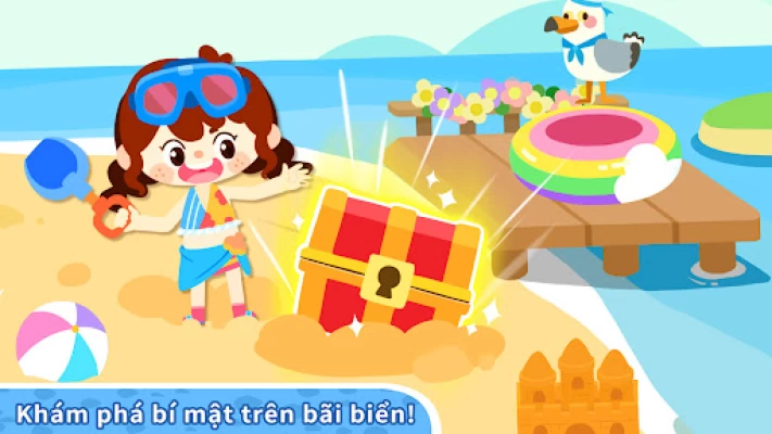 Cuộc khám phá và vui chơi chưa bao giờ dừng lại ở đây: Khai quật kho báu dưới bãi cát, thử lái du thuyền...! Mang theo sự tò mò của bạn, bạn sẽ không ngừng khám phá ra những điều mới! Ghi lại những khám phá thú vị trong nhật ký kỳ nghỉ của bạn nhé!