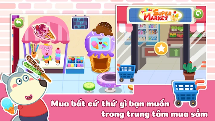 Giải phóng trí tưởng tượng: Khám phá toàn bộ của Thị trấn của Wolfoo, từ khu dân cư đến trung tâm mua sắm sôi động.
