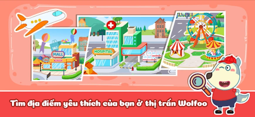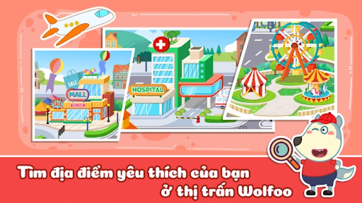 🏨 Trong Thị trấn mơ ước của Wolfoo, mỗi góc nhỏ đều được thiết kế để tương tác — từ những con phố đông đúc ở trung tâm thành phố đến những góc yên bình của ngôi nhà mơ ước của Wolfoo. Thị trấn mơ ước bao gồm các địa danh quan trọng như trường học, nơi trẻ em có thể mô phỏng một ngày của một học sinh mẫu giáo, một bệnh viện giới thiệu cho trẻ về các phương pháp chăm sóc sức khỏe cơ bản, một nhà hát cho các nghệ sĩ nhí, một trung tâm mua sắm Wolfoo, và một công viên giải trí đầy vui nhộn với các trò chơi vui nhộn.