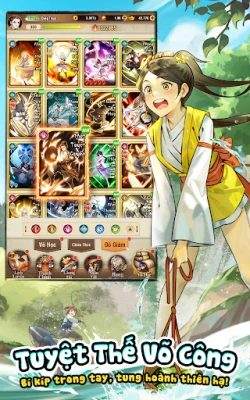 12 vị trí xuất chiến, linh hoạt tự do sắp xếp – tạo nên đội hình thẻ tướng võ hiệp của riêng bạn! Giáng Long Chưởng phối Bát Quái Quyền, tuyệt chiêu liên kích, khắc chế thắng trận! Khéo léo vận dụng võ học, lật ngược thế cục giang hồ chỉ trong chớp mắt!