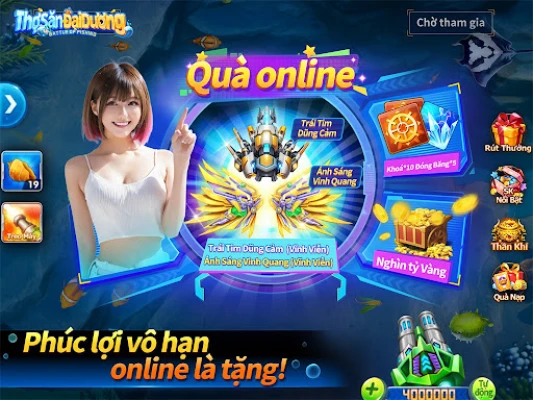 Online là tặng ngay gói quà hào hoa, còn có nhiều quà khủng mỗi ngày, lối chơi ngày lễ, phúc lợi nhận không ngừng tay, chơi thoả thích đến đã!