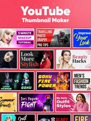 Thumbnail Maker App features a huge collection of readymade thumbnails of all categories including food, fashion, business, traveling, games, health & fitness, animals, etc, and channel art designs, so even those without designing experience can pick any template and make any thumbnail in seconds. You will no longer need an expert graphic designer to design thumbnails. It’s a handy thumbnail tool, Go ahead to create attractive thumbnails for any type.