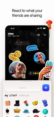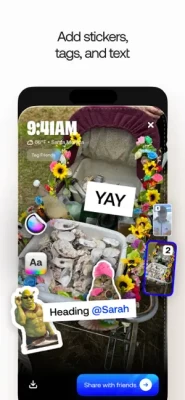 • Start filming or upload from camera roll to create your 2-sided video • Share snippets of daily life, reactions, before vs afters, jumpscares... • ...then tilt your phone to reveal both sides • Film in 60fps on the Tilt camera (snappy!) • Add stickers and text to your videos • Quick react with a face recording
