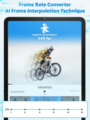 Convert videos to any frame rate you need. In addition to increasing the frame rate of normal videos to 60/120/240 fps, it can also convert high frame rate videos into cinematic 24fps videos and the most commonly used 30fps videos of smaller size to share.