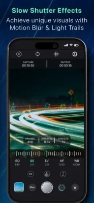 The app’s intuitive interface makes it easy to adjust your settings on the fly, allowing you to focus on crafting your story. And for those looking to add a twist to their visuals, ReeLapse's Slow Shutter modes* — Motion Blur and Light Trails — are your gateways to incredibly creative effects, seamlessly blending long exposure techniques with your timelapse.