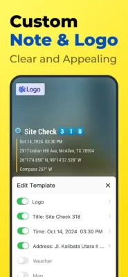 Tailor the photos you capture! You can stamp photos with multiple items, including time, GPS map, geotag, address, weather, compass, altitude, longitude, latitude, Tag, and editable notes such as the project info for inspection.