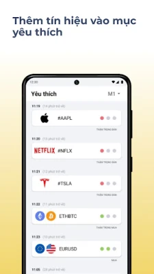 Các tín hiệu giao dịch được cung cấp miễn phí trong app sẽ giúp bạn nhận định được xu hướng của thị trường một cách chính xác. Theo dõi