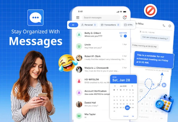 Messages là một ứng dụng nhắn tin đa năng cung cấp các tính năng như sắp xếp SMS, lên lịch SMS và hỗ trợ biểu tượng cảm xúc và nhãn dán, mang đến trải nghiệm nhắn tin cao cấp trên thiết bị Android của bạn.
