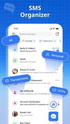 Tính năng Trình tổ chức SMS của ứng dụng nhắn tin tự động sắp xếp tất cả các cuộc hội thoại và tin nhắn SMS. Sử dụng bộ lọc tin nhắn văn bản để phân loại tin nhắn của bạn.