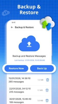 • Sao lưu tin nhắn và cuộc hội thoại của bạn và khôi phục mọi thứ bất cứ lúc nào