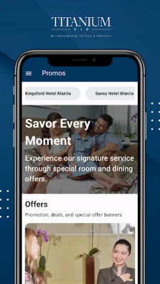 The app offers a convenient way for Titanium VIPs to book their reservations at any Megaworld Hotels & Resorts property. Users can browse availability, access exclusive deals, and make personalized requests during their stay.