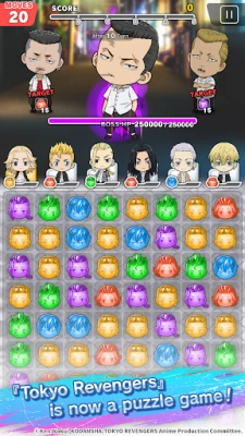 Make the strongest team you can with characters from Tokyo Revengers! Via a match-3 elimination puzzle. Take out the toughest delinquents with individual character’s skills!