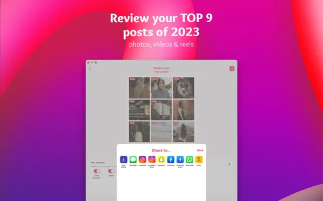 - With a year picker, you can generate collages of the TOP 9 Instagram moments from previous years, not just 2023.