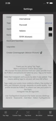Want to tag your Instagram pictures instantly to get more Likes and Followers? Then try Top Tags keyboard (TopTagsDock)! It's the most effective way to hashtag your posts on Instagram from keyboard.