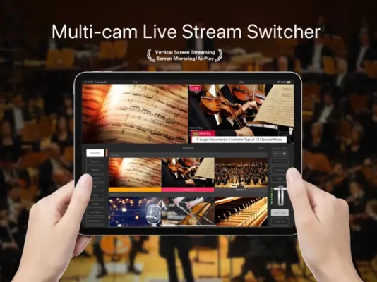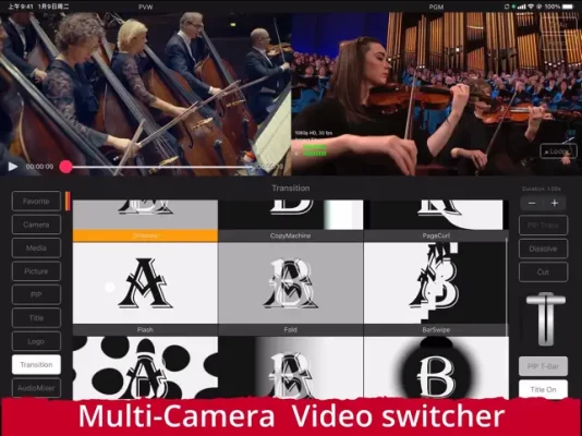- Real-time transition among the external inputs, built-in cameras, and media in the Photo Library