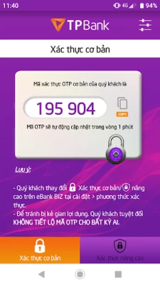 TPBank eToken là ứng dụng bảo mật được cài đặt ngay trên thiết bị di động để lấy mã OTP và gắn duy nhất với tài khoản đăng nhập eBank của khách hàng. Được đánh giá là phương thức xác thực thay thế ưu việt cho OTP truyền thống qua SMS, TPBank eToken chắc chắn sẽ mang lại cho khách hàng những trải nghiệm hoàn toàn hài lòng với những đặc điểm nổi bật dưới đây: