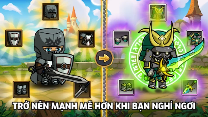 Sự lựa chọn tuyệt vời nhất về các mặt hàng mà trò chơi Idle & AFK từng thấy. Chọn từ hàng ngàn mặt hàng! Kết hợp và phối hợp các mặt hàng giữa các anh hùng của bạn để tạo ra phong cách chơi mới!