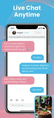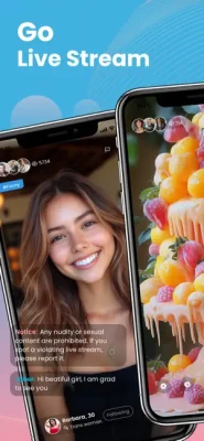 Unique Features: • Live stream and live chat • Send private messages • Start Video chatting