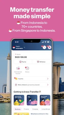 Transfez is an international money transfer app that helps individuals and businesses send money faster, more transparently, and cost-efficiently, from Indonesia to overseas destinations and from Singapore to Indonesia. Flip the way you send money abroad with hassle-free and cost-effective international transfers through the Transfez app.