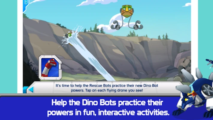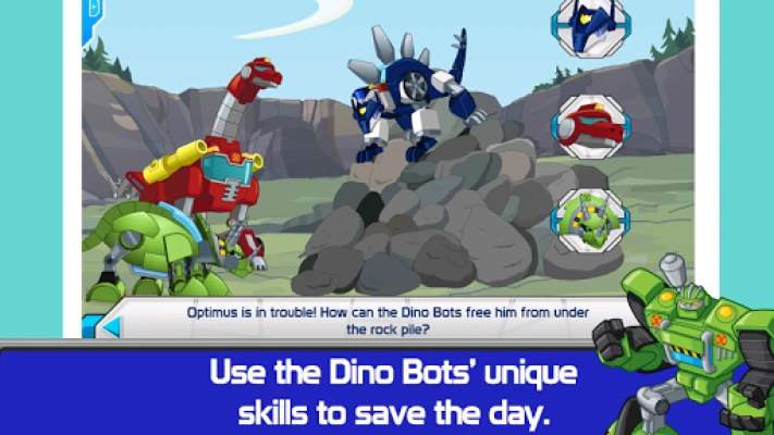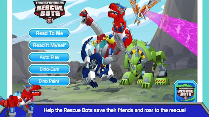 The Rescue Dinos have arrived! Two friends of Griffin Rock Rescue, Professor Baranova and Frankie Greene, have gone missing on a mysterious island, but conniving and greedy Colonel Quarry, the only person who knows where to find them, is refusing to help! The latest TRANSFORMERS RESCUE BOTS interactive storybook app, based on the hit animated series, suits up the reader as the Rescue Team’s newest cadet and puts them at the center of the action, working with the Rescue Bots to save their friends and “roar to the rescue” in their new dinosaur forms!