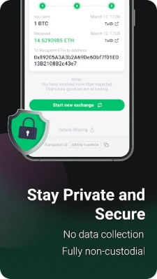 ChangeNOW tập trung vào sự an toàn và đơn giản – dịch vụ này không cần đăng ký và không bị giam giữ. Điều đó có nghĩa là tài sản tiền điện tử của bạn không bao giờ được lưu trữ trên một số “tài khoản”. Trực tiếp gửi, trực tiếp nhận. Để bảo mật hơn, hãy sử dụng mã pin 4 ký tự hoặc xác thực qua id cảm ứng.