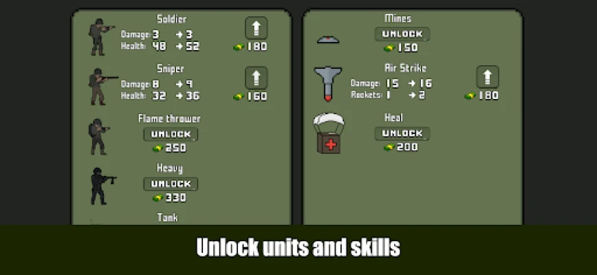 - Upgrade System: Power up your soldiers, trenches, and battle spells like airstrikes and mines