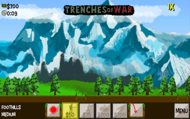Trenches of War is a fast-paced World War I-inspired strategy game. Battle through the Alps by spawning units and capturing trenches, barracks, and factories. Cross rivers that rise when it rains. Use or destroy bridges and cornfields that may aid or deter your maneuvers.