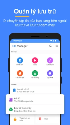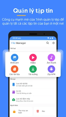 Với Quản lý tệp tất cả trong một, bạn có thể dễ dàng điều hướng qua bộ lưu trữ của thiết bị và thẻ SD bên ngoài, giúp việc định vị và quản lý bằng ứng dụng tệp trở nên dễ dàng. Giao diện trình quản lý tệp trực quan cho phép bạn tìm kiếm và sắp xếp các tệp một cách dễ dàng, đảm bảo rằng bạn có thể tìm thấy những gì mình cần trong vài giây.