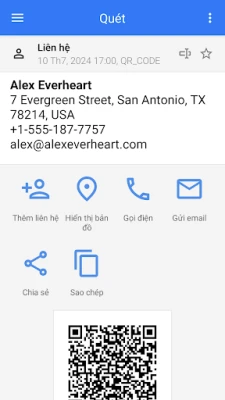Tùy chọn Khác: Tạo QR, Quét hình ảnh, Quét từ Thư viện, Chia sẻ thông tin liên lạc của bạn qua QR
