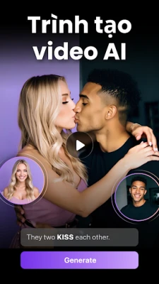 💑 Hoạt hình AI hôn & ôm: Kết hợp hai ảnh thành tương tác ấm áp, sống động.