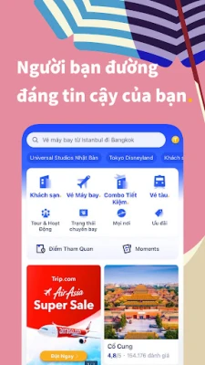 Ứng dụng Trip.com cho phép bạn dễ dàng đặt vé máy bay, khách sạn và vé tàu với mức giá cực thấp. Trở thành thành viên Trip.com ngay để khám phá những ưu đãi mới nhất và ưu đãi dành riêng cho thành viên, giúp bạn tiết kiệm nhiều hơn!