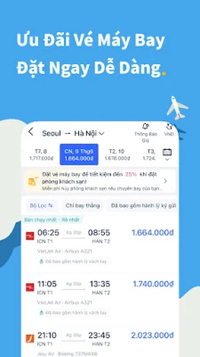 • Vé máy bay: Vé máy bay nội địa và quốc tế với mức giá thấp nhất có thể và dễ đặt