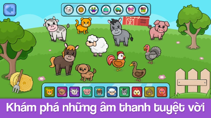 Âm thanh dành cho trẻ. Không chỉ giúp giải trí mà còn mang tính giáo dục, hoạt động dành cho trẻ chập chững này giúp con bạn tìm hiểu âm thanh của các loài động vật, phương tiện giao thông và nhiều thứ khác nữa! Baby piano có đến 60 âm thanh tuyệt vời cho trẻ, được chia thành 6 chủ đề: