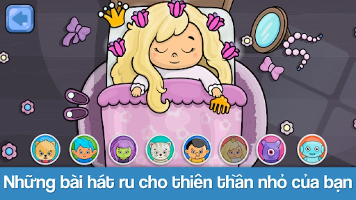 Bài hát ru. 8 bài hát ru nổi bật sẽ giúp con bạn dễ ngủ hơn. Hãy để trẻ chọn một nhân vật đáng yêu để ngắm chúng chìm vào giấc ngủ trong khi lắng nghe một giai điệu êm dịu.