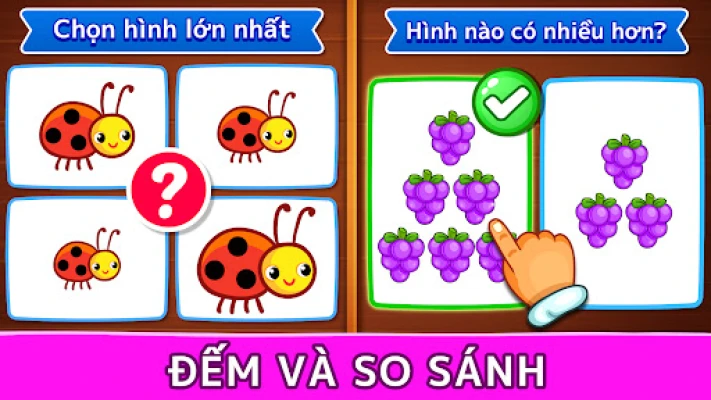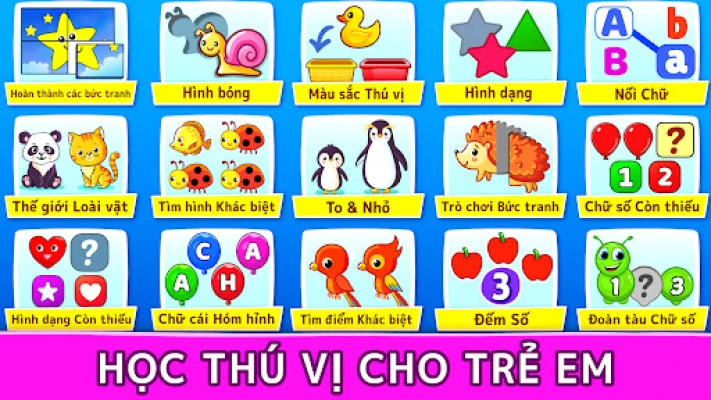 Bạn muốn dạy đứa con ở độ tuổi mới biết đi, mẫu giáo hoặc mầm non của mình cách nhận biết con số, logic, nhận biết hình dạng, đếm số hoặc bảng chữ cái tiếng Anh? Bộ sưu tập các trò chơi miễn phí cho trẻ em này chính là điểm khởi đầu hoàn hảo cho bạn. Trò chơi trẻ em chứa đựng vô vàn các hoạt động cho trẻ mầm non, trò chơi giáo dục cho trẻ mới biết đi, trò chơi trí não cho trẻ nhỏ, và nhiều hoạt động khác nữa!