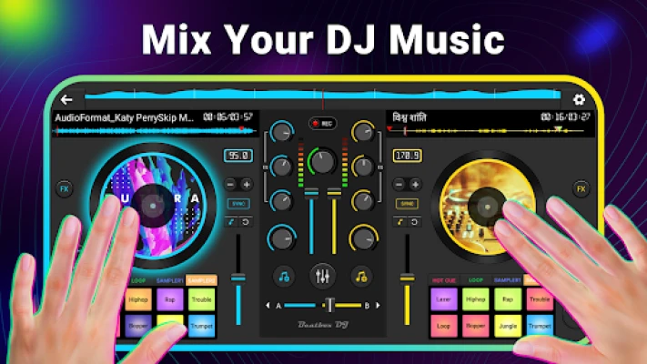 - Trình trộn DJ với hiệu ứng âm thanh, bài hát phối lại và DJ Music Maker