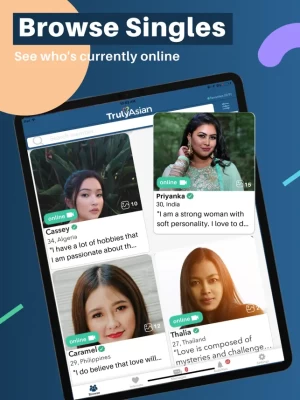 The best Asian dating app. TrulyAsian continually connects people throughout the world with Asian singles from Indonesia, Thailand, The Philippines, Singapore, Hong Kong, and many other Asian countries whenever and wherever. With a large and curated user-base, whether you’re looking for serious relationships or marriage, you’ll surely find your perfect match here.